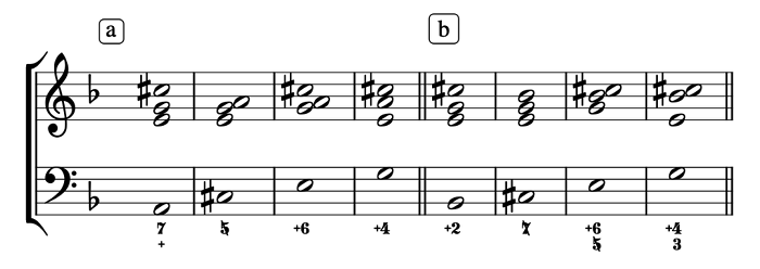 Example 11. (a) Chords of the dominant seventh and (b) of the superfluous second, with their derivatives