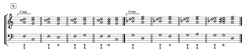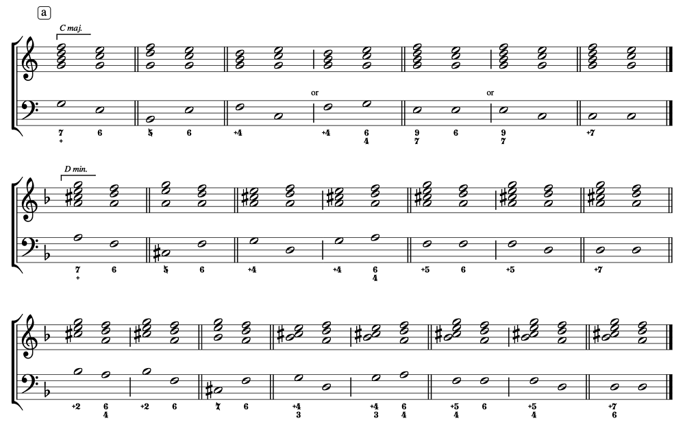 Example 22. “Extraordinary” bass motions drawn from: (a) the perfect cadence, and (b) the irregular cadence (Rameau 1722, 222–24, 274, 283, 413)