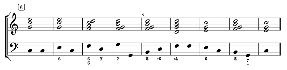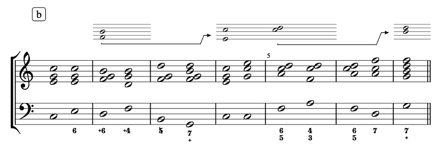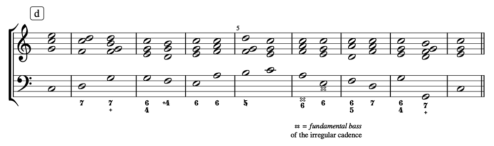 (a–b) Chord inversions and delayed resolutions; (c–d) Disjunct resolutions (Rameau 1722)