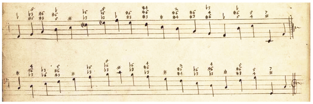 Example 10. The règle with its 4ˆ–5ˆ–1ˆ cadential formula(a) from Saizenay ms. (1699–)