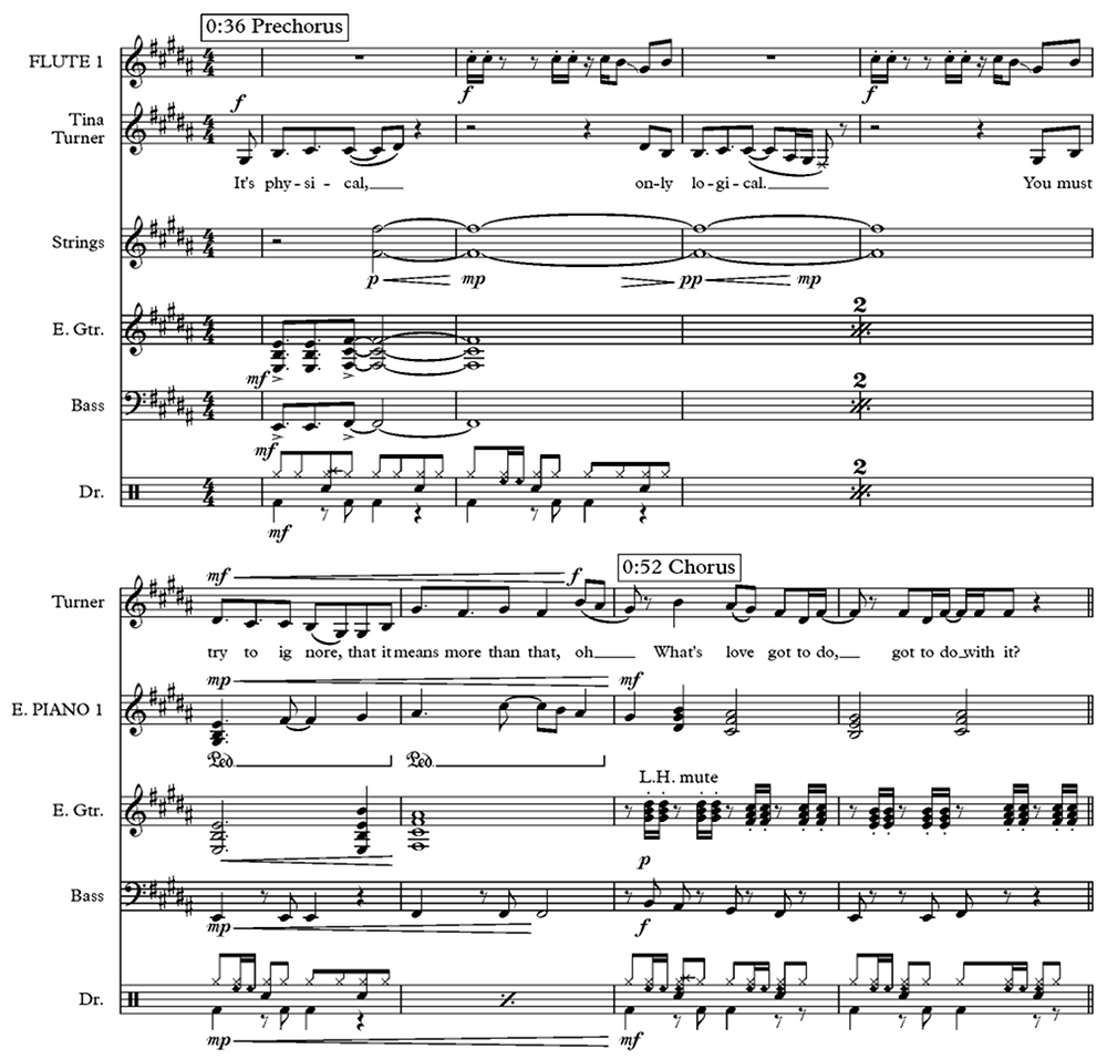 Prechorus and chorus of “What’s Love Got to Do with It” (0:36–0:57)