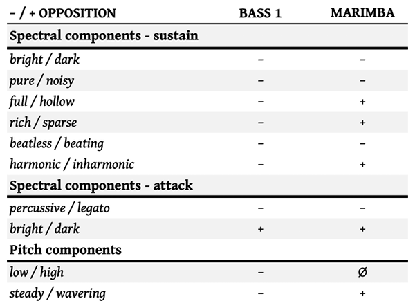 An opposition table comparing two sounds