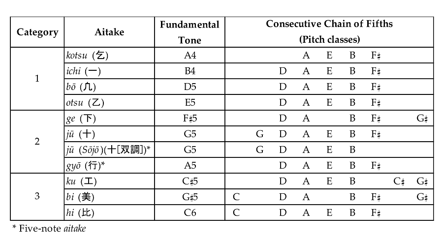 organized into stacked consecutive fifths