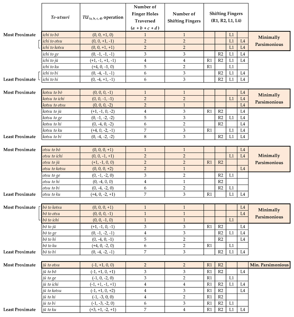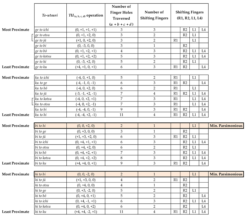 Appendix. List of all te-utsuri between six-note aitake used in tōgaku performance