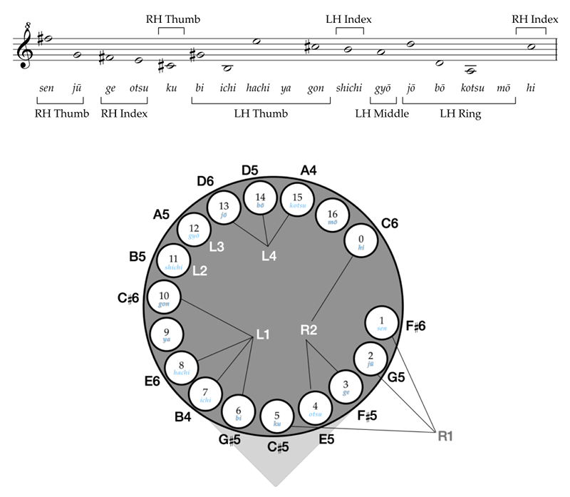 Distribution of finger holes across the left hand (LH) and right hand (RH)