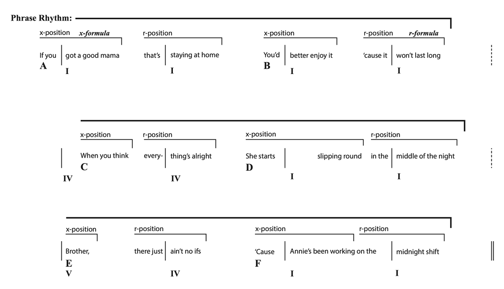 Buddy Holly, “Midnight Shift,” verse 4; twelve-bar blues and AB/CD/EF poetic form