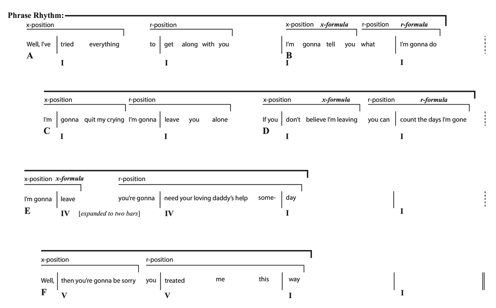 Example 31. Elvis Presley, “Milkcow Blues Boogie,” verse 4; expansion of the twelve-bar form to sixteen (underlying) bars