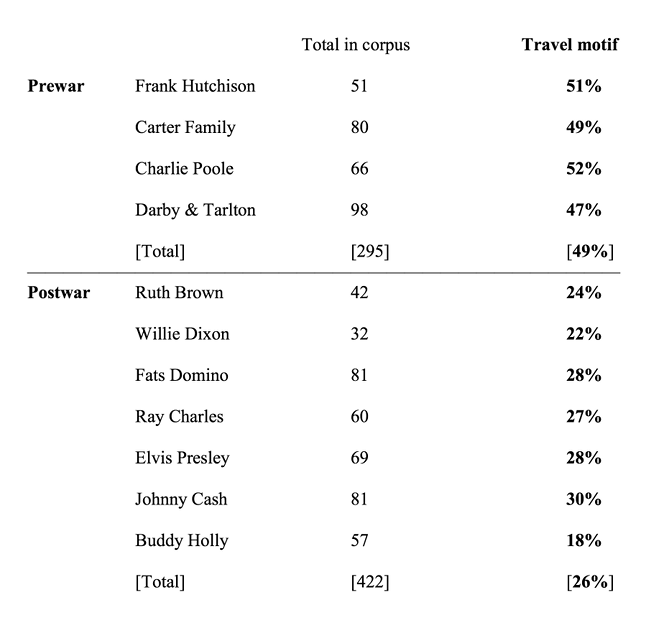 Example 32. The percentages of formulas expressing the travel motif (formulas 2, 3, 14, 15, 16, and 20) in the corpus