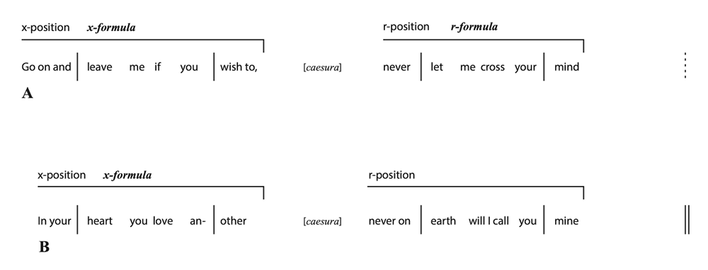 Example 8. The Carter Family, “Fond Affection”; two formula positions per line, separated by a caesura