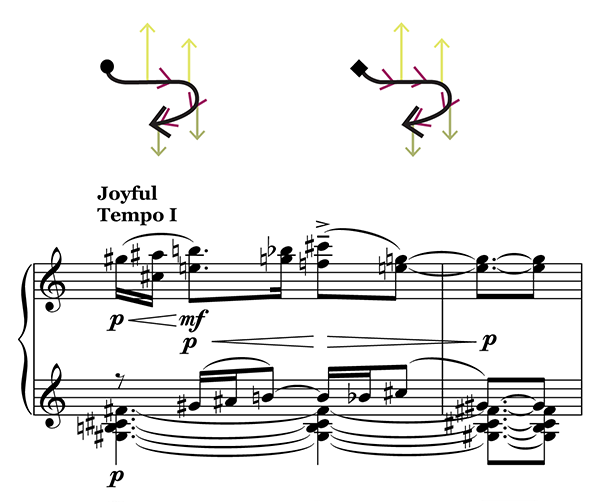Trace-form and score excerpt of mm. 35–6, 2’07”–2’12”