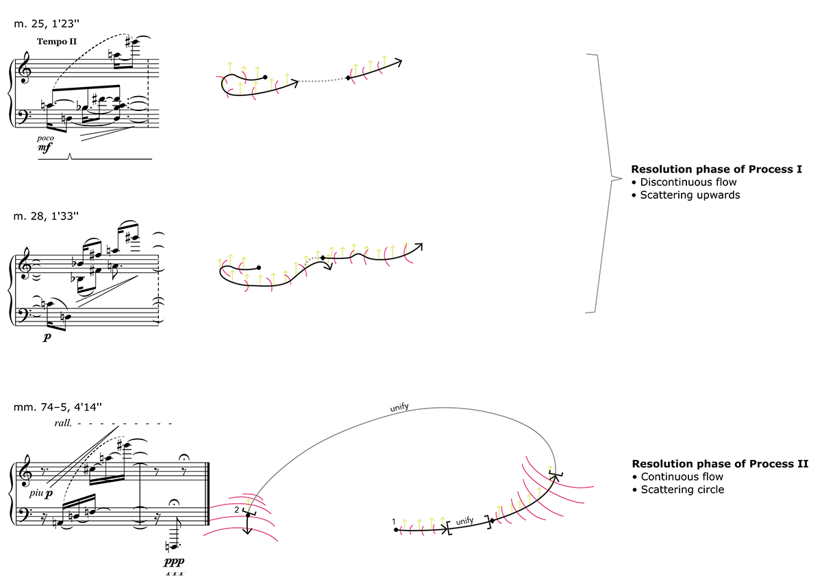 Example 21. Unifying gestures. Gray curves joining left-hand and right-hand trace-forms show the flow of one hand to the other