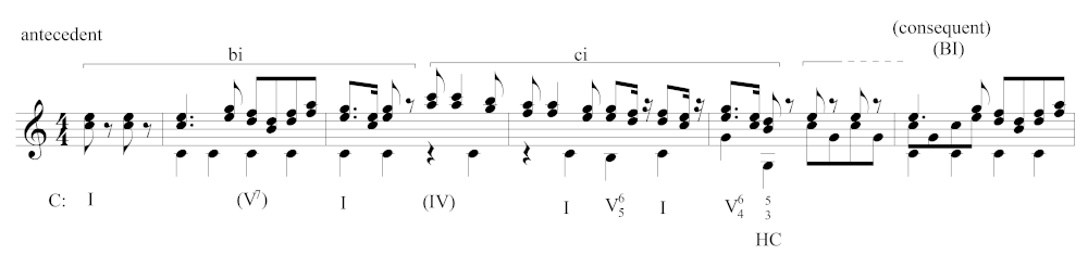 , II, mm. 1–4; Caplin’s (1998) Analysis
