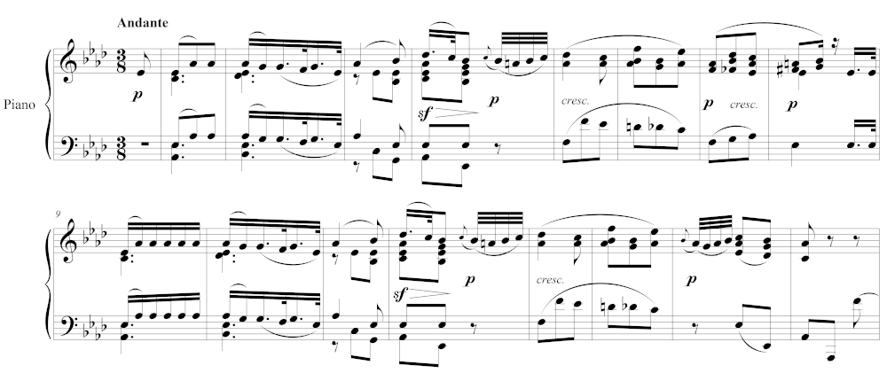 Beethoven, Piano Sonata no. 12, op. 26, I, mm. 1–16