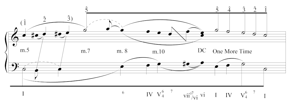 Outer-voice analysis of Mozart, Piano Sonata in C Major, K. 279, I, mm. 5–12