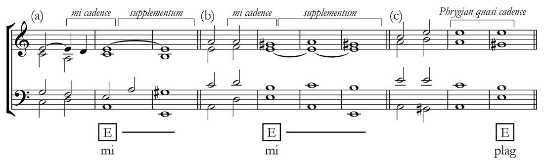 Derivation of the Phrygian quasi-cadence, after Coluzzi (2013), Examples 2e, 2f, and 4