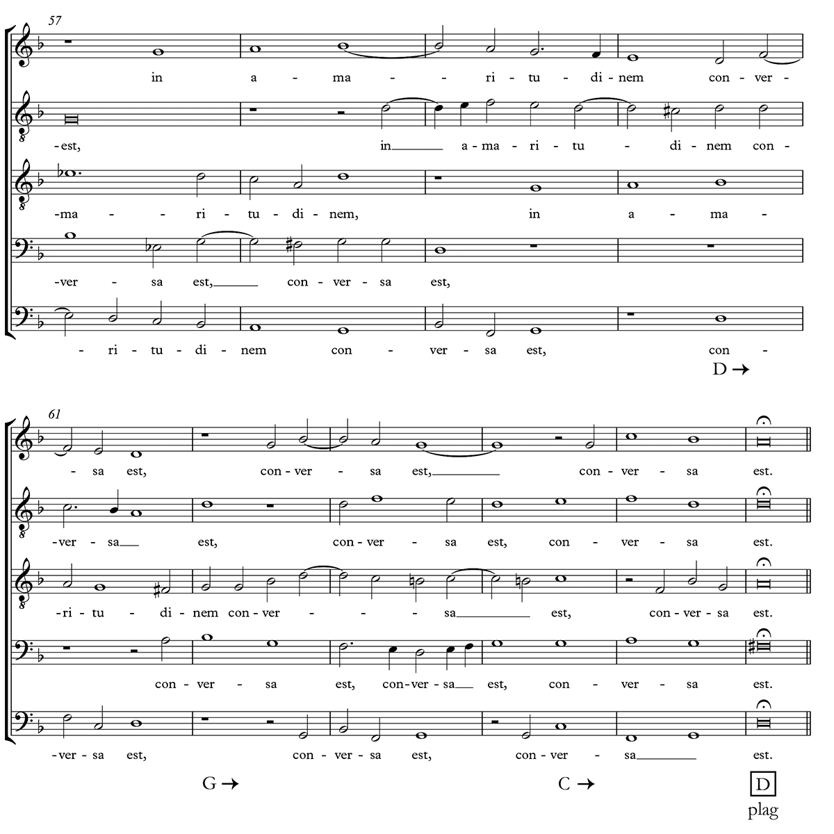 Terminal plagal cadence in Byrd, “Vide Domine afflictionem,” mm. 57–66