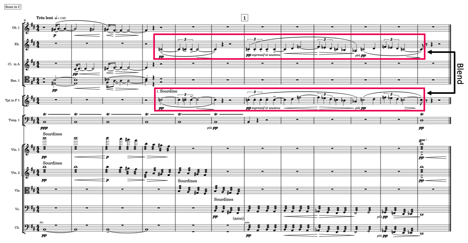 Audio example 4a presents the blend of English horn plus muted trumpet and 4b adds the full musical context [simulation from OrchPlayMusic Library]