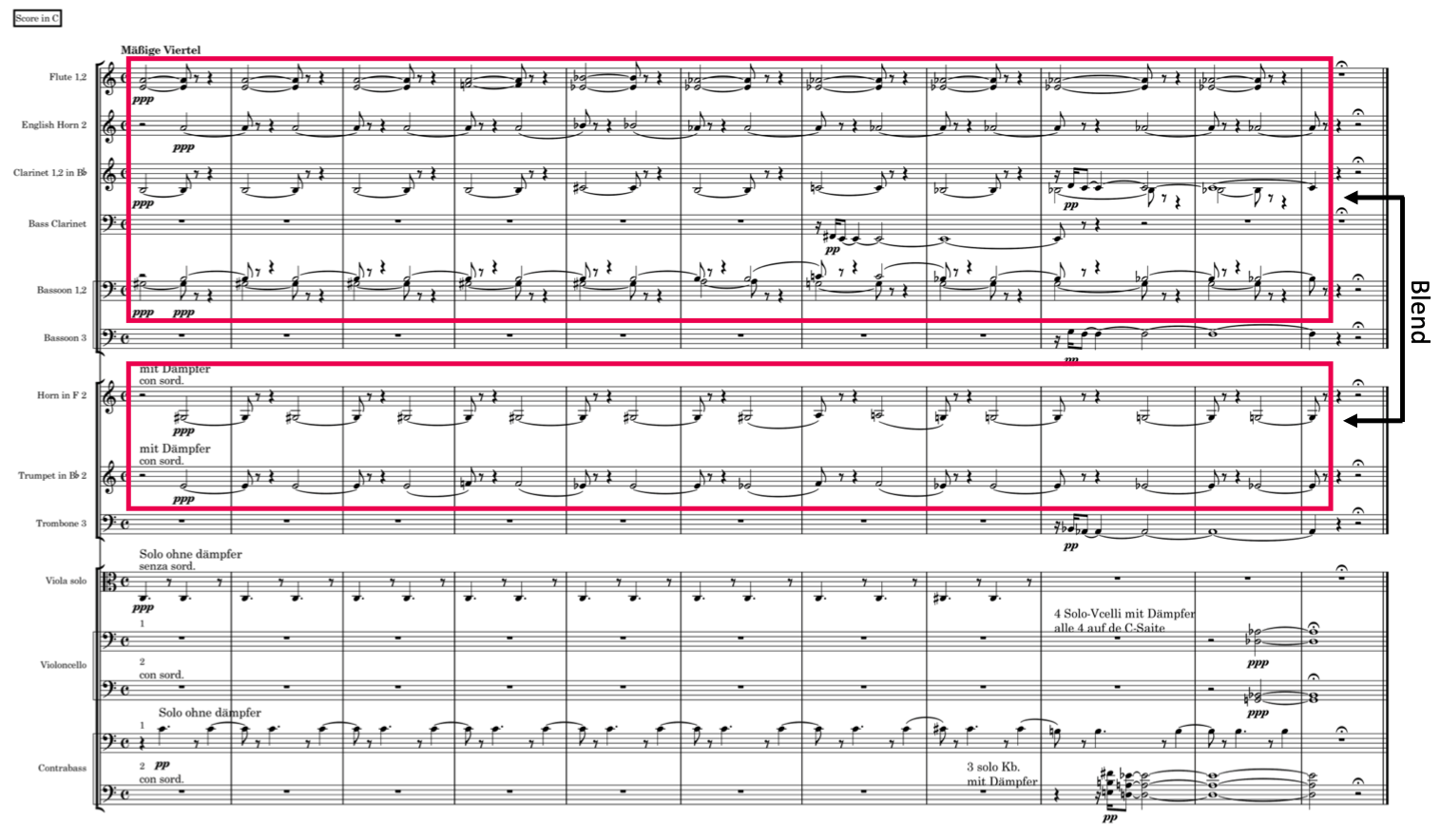 Example 8. Timbral emergence (sustained, transforming): Schoenberg, Five Pieces for Orchestra op. 16, iii, mm. 1–11 Audio example 5 [recording of BBC Symphony conducted by Pierre Boulez, CBS Masterworks]