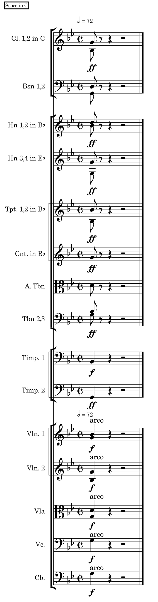 Example 9. Timbral emergence (punctuated): Berlioz, Symphonie fantastique, iv, m. 17 Audio example 6 [simulation from OrchPlayMusic Library]