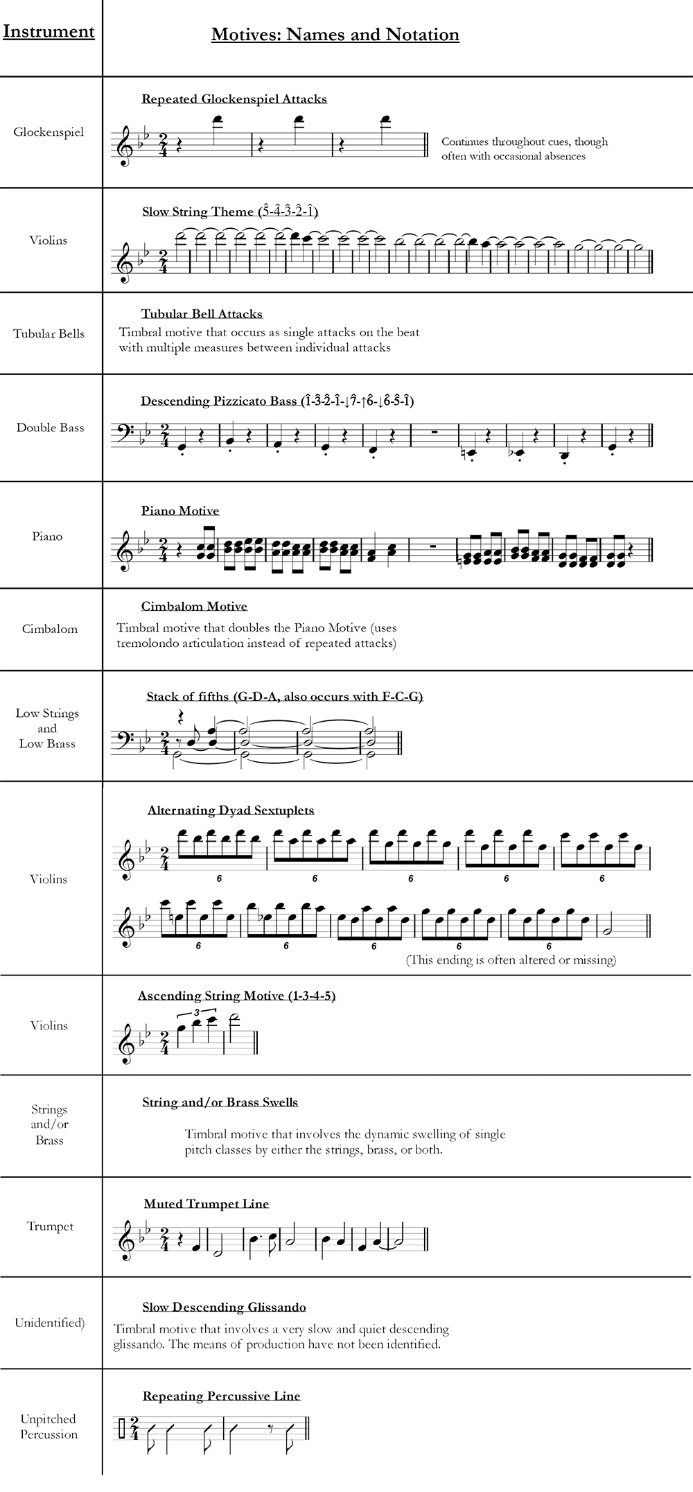 Example 15. List of the thirteen motives found in the complete form of Barton’s version of the main theme
