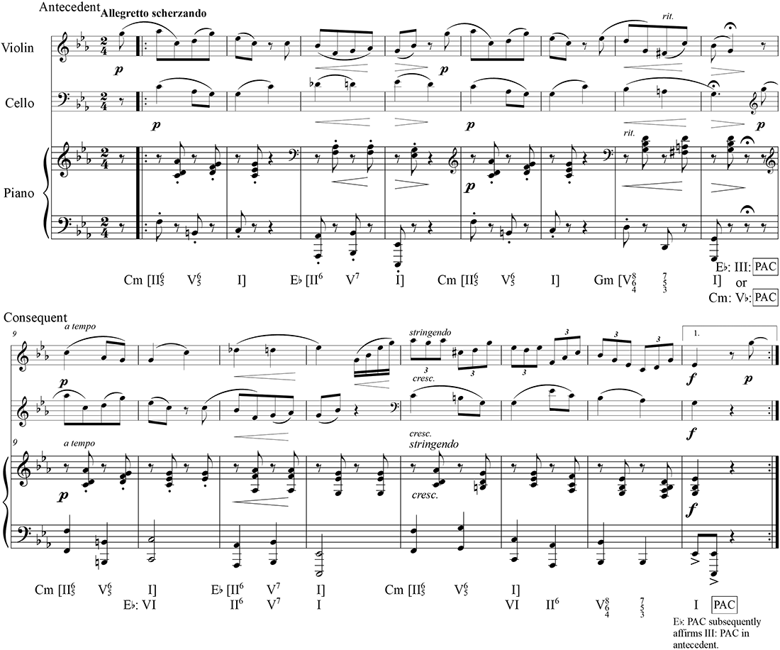 Dvořák, Piano Trio in B-flat major, Op. 21, third movement, mm. 1–16