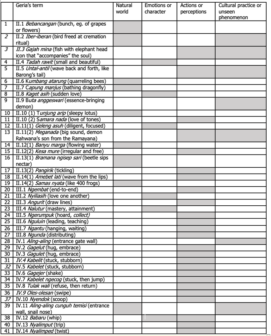 Kinds of lexical fields for Geria’s terms