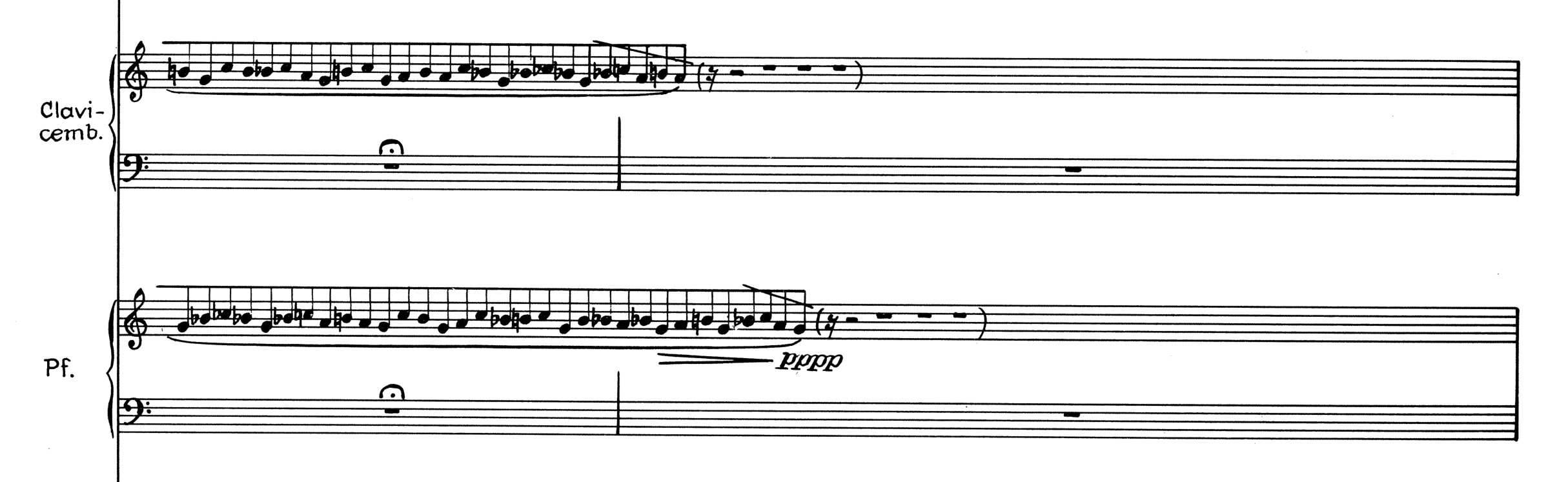 Example 3. End of the senza tempo stratum of grace notes for piano and celesta (Letter F, movement I)