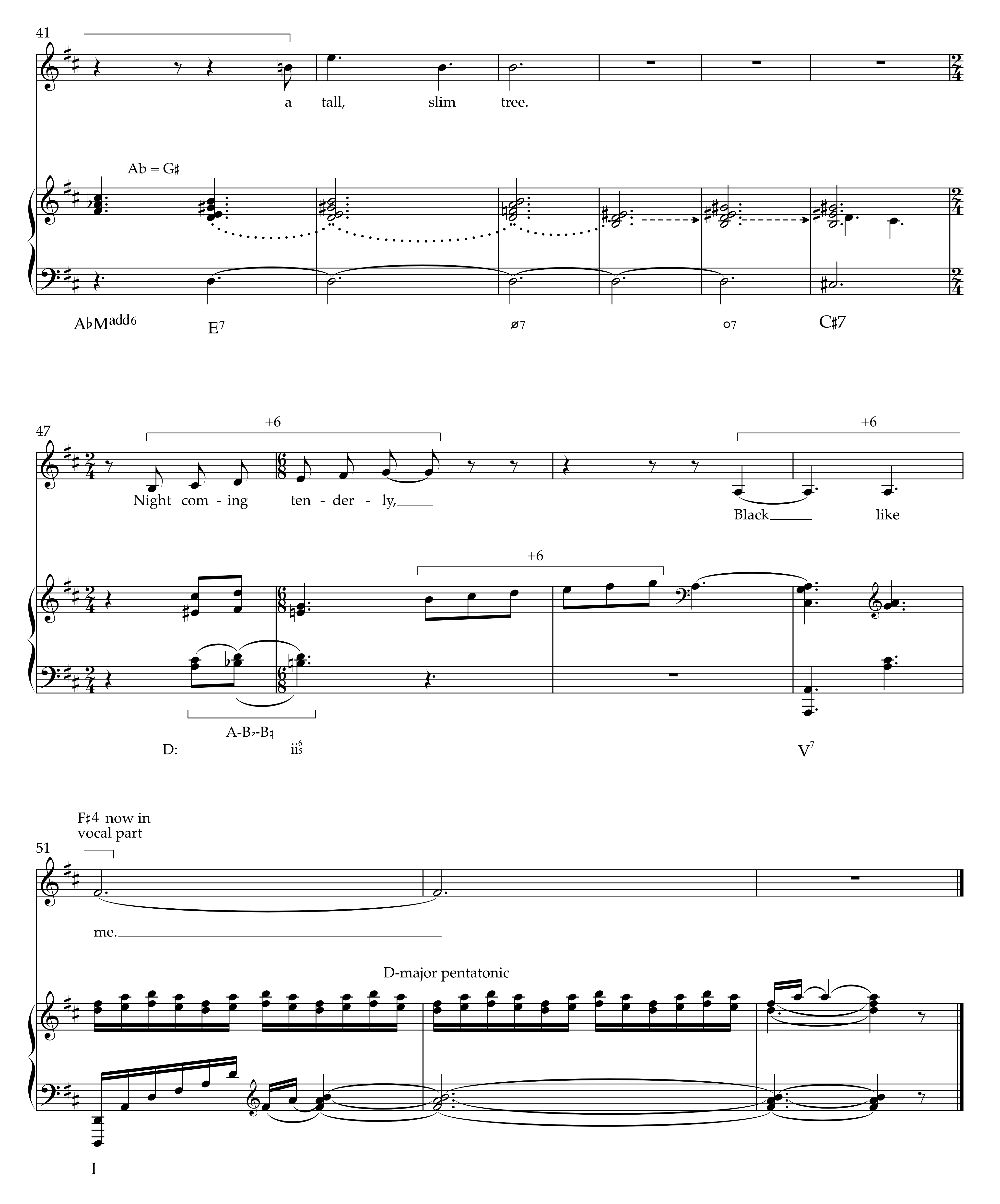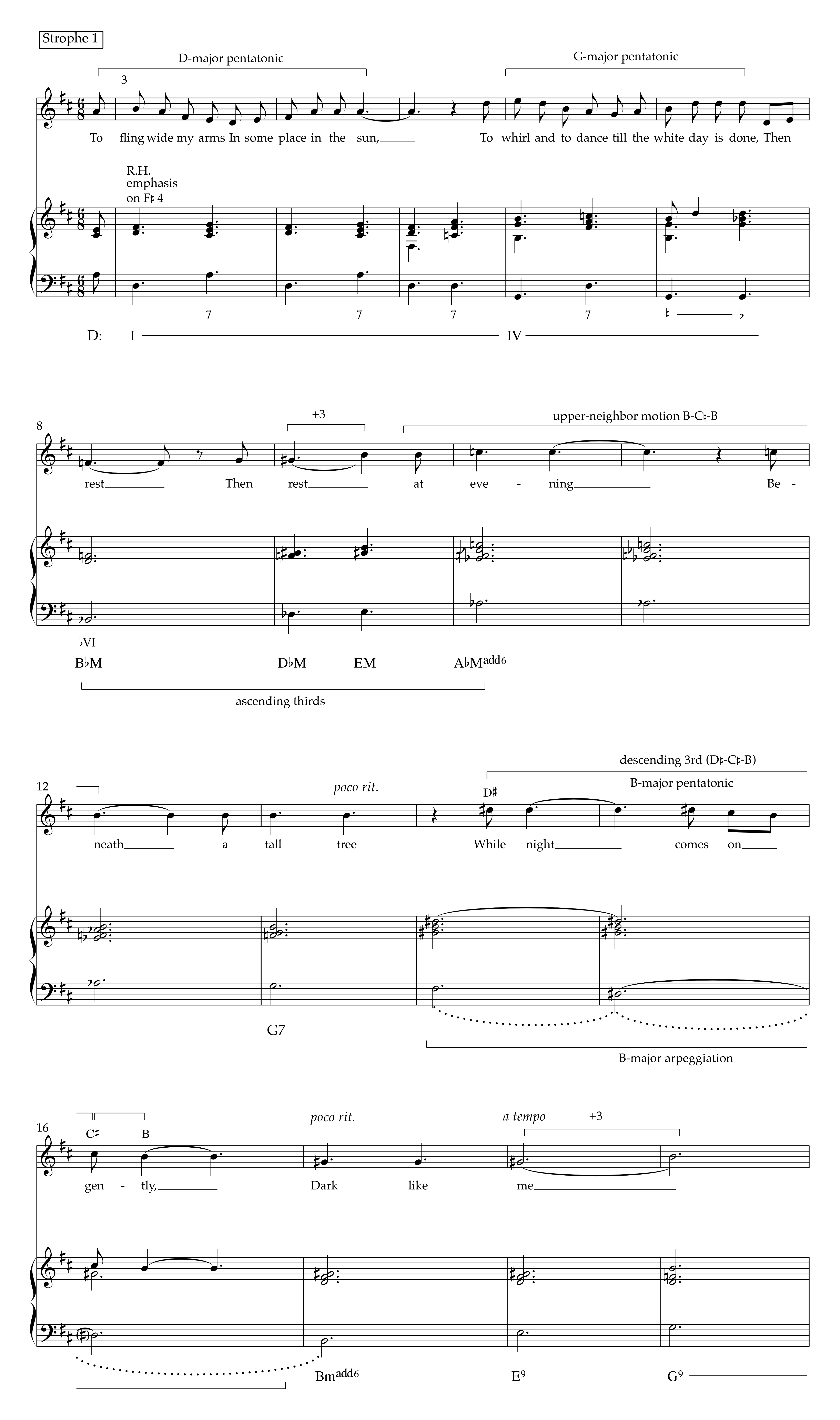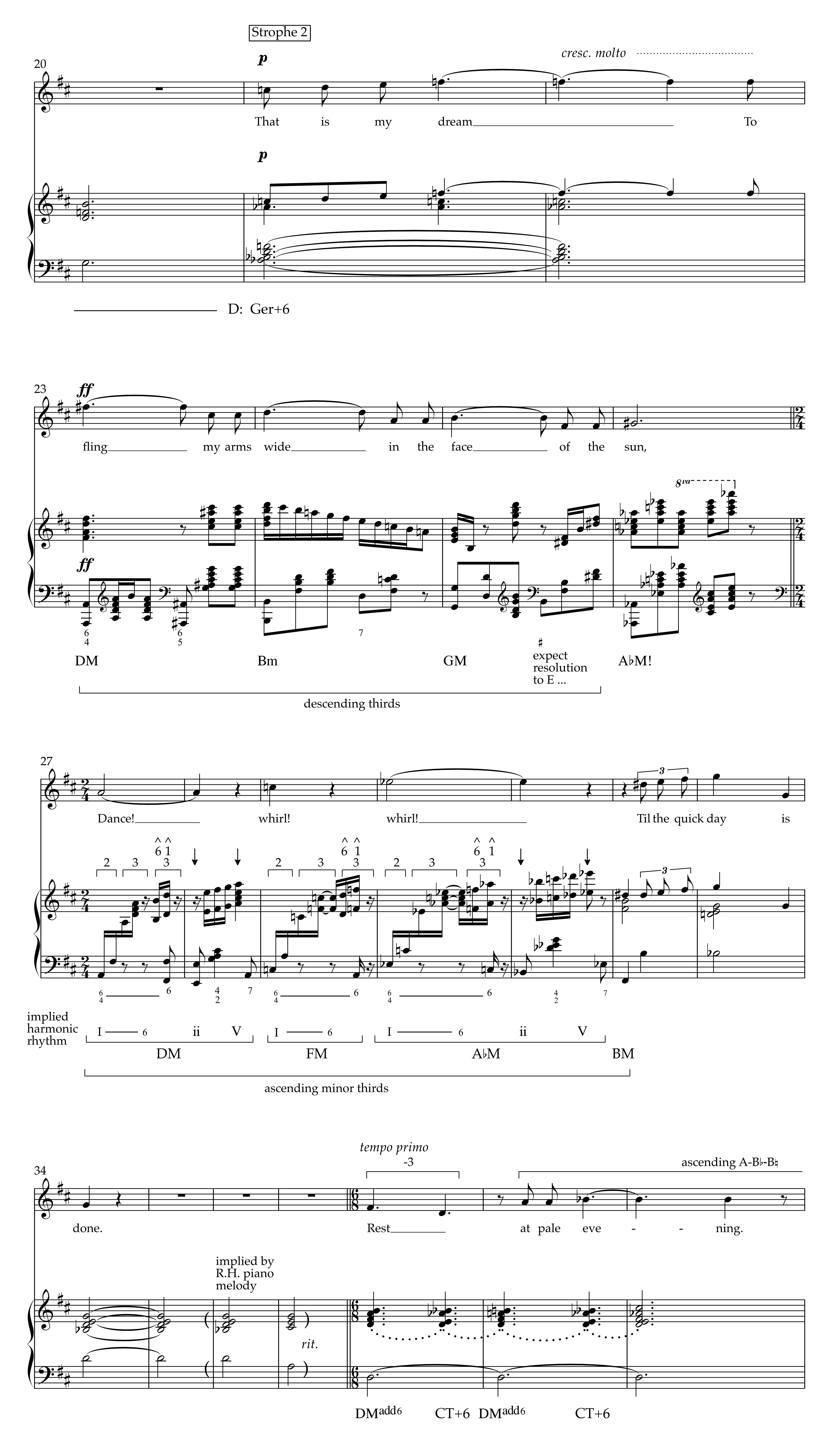 Florence Price, “My Dream,” annotated vocal score with piano reduction, mm. 3–end