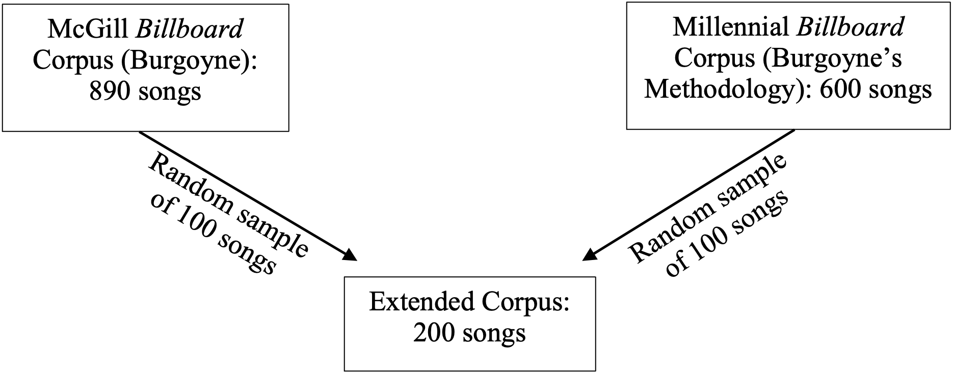 Example 1. The breakdown of how Burgoyne’s McGill Billboard and the corresponding Millennial Billboard are sampled to create the 200-song Extended Corpus