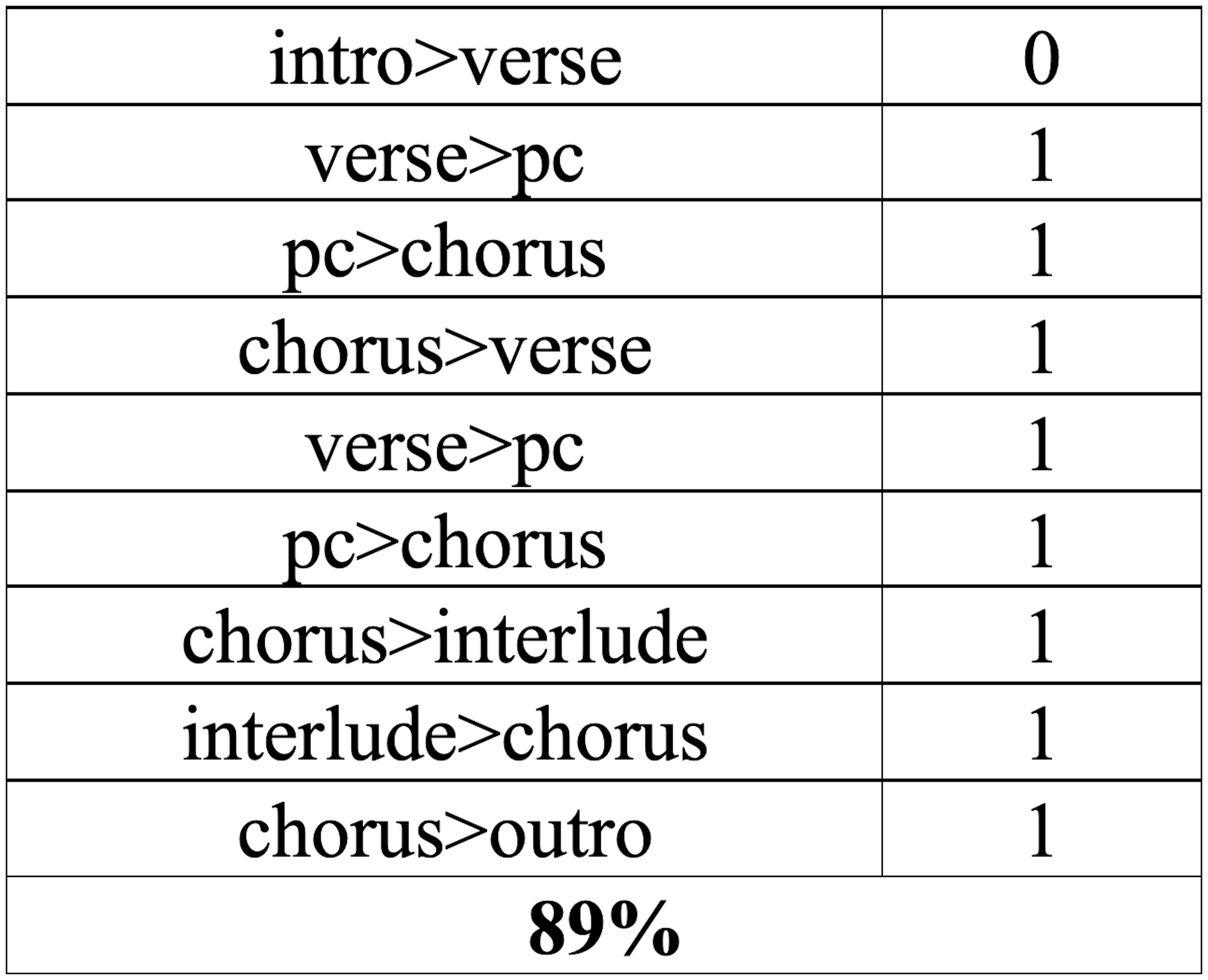 The result of encoding “Crazy” (1993) by Aerosmith using the above-stated methodologies