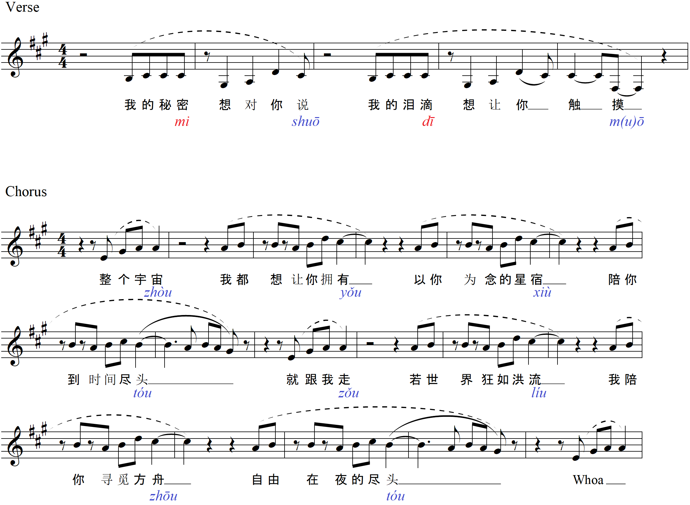 Rhyme pattern and melodic construction in “The End of Night,” verse and chorus