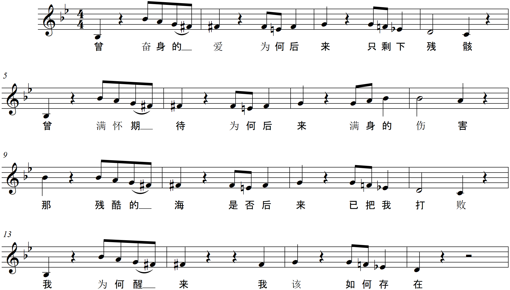 Transcription of main melody from “Young Man & Sea”