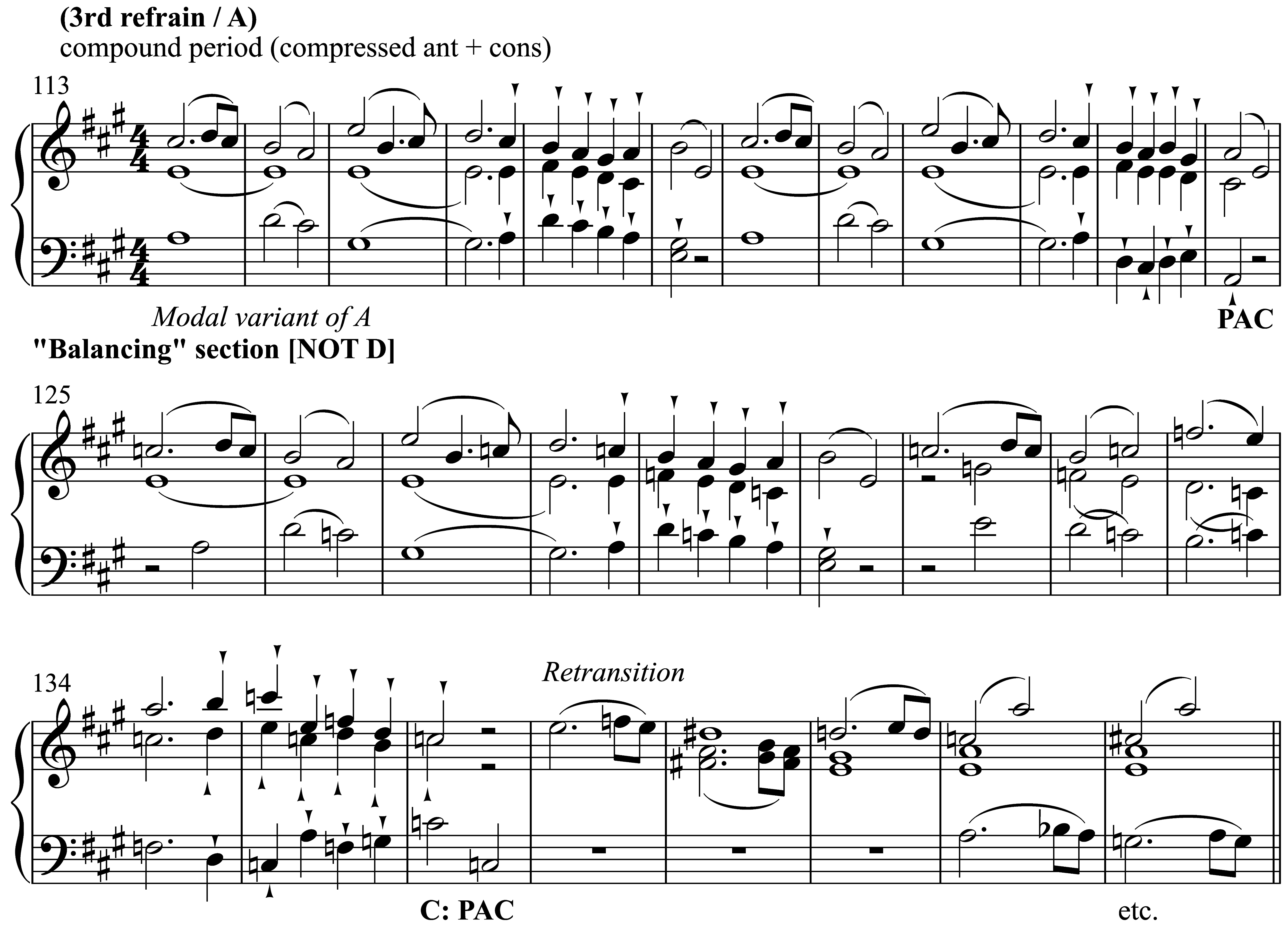 Haydn, Symphony No. 64, balancing section (mm. 113–41)