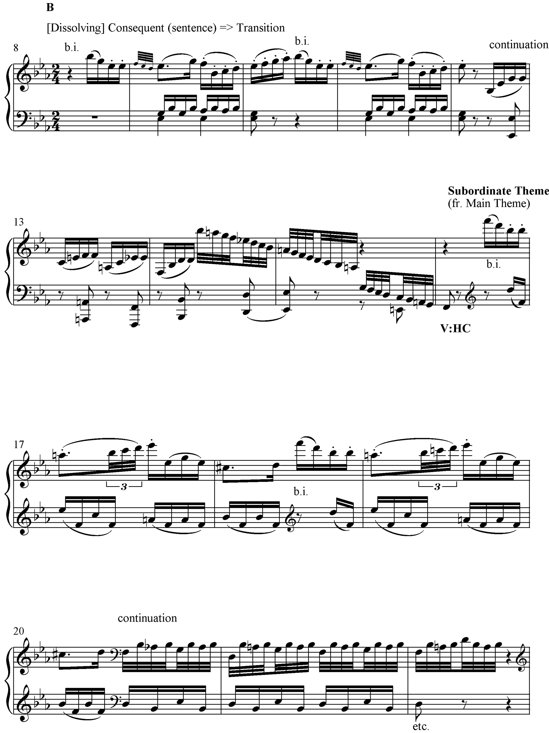 Clementi, Piano Sonata op. 12, no. 2, mm. 8–22