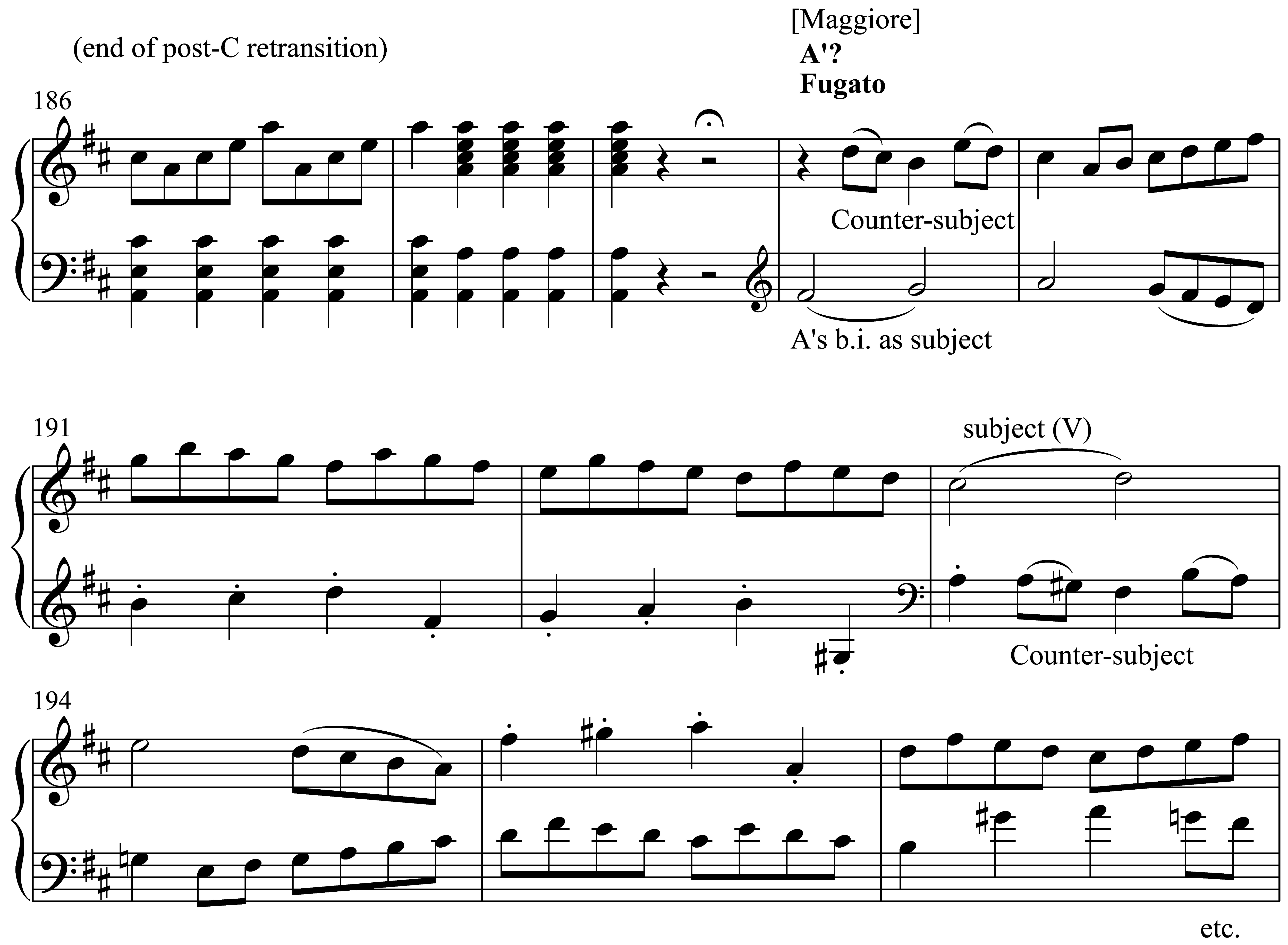 Haydn, Symphony No. 101, mm. 186–96