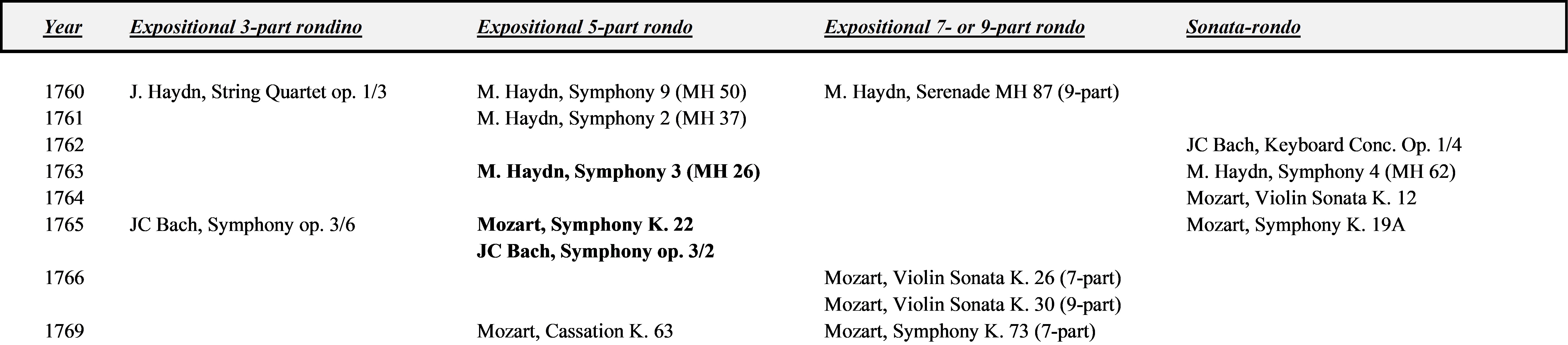 List of expositional rondos and sonata-rondos, 1760s