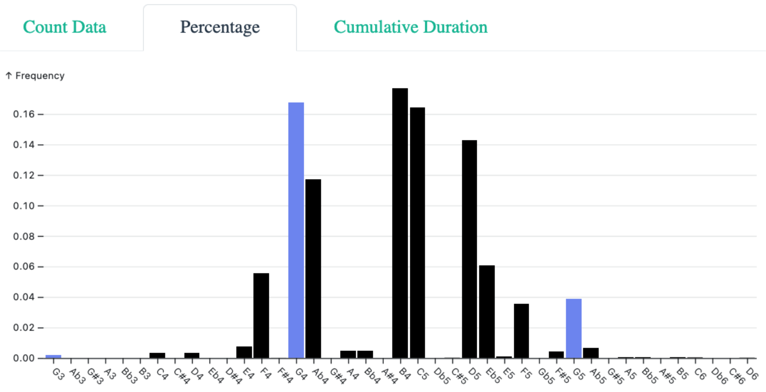 Bar plot of pitches in G freygish