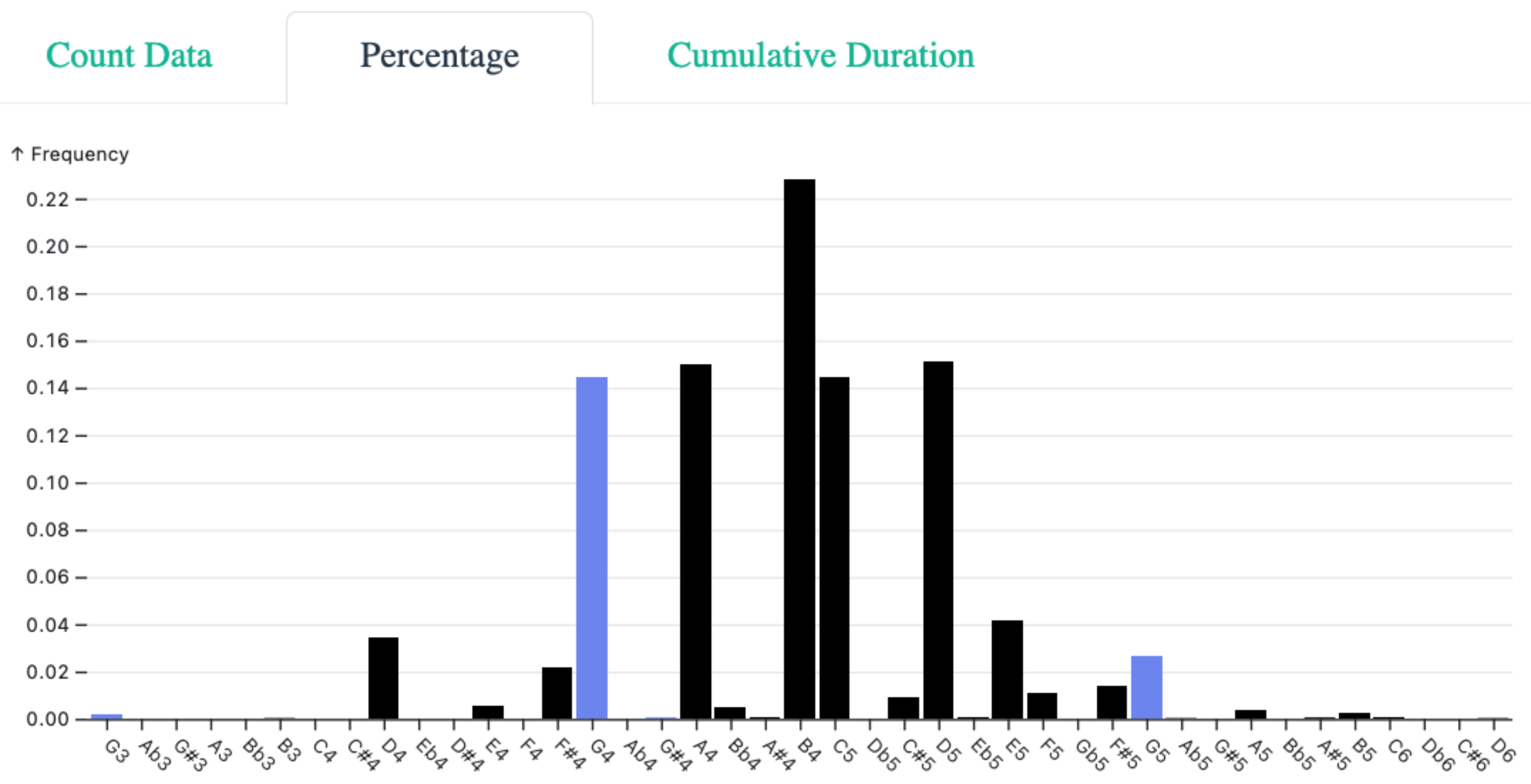 Bar plot of pitches in G major