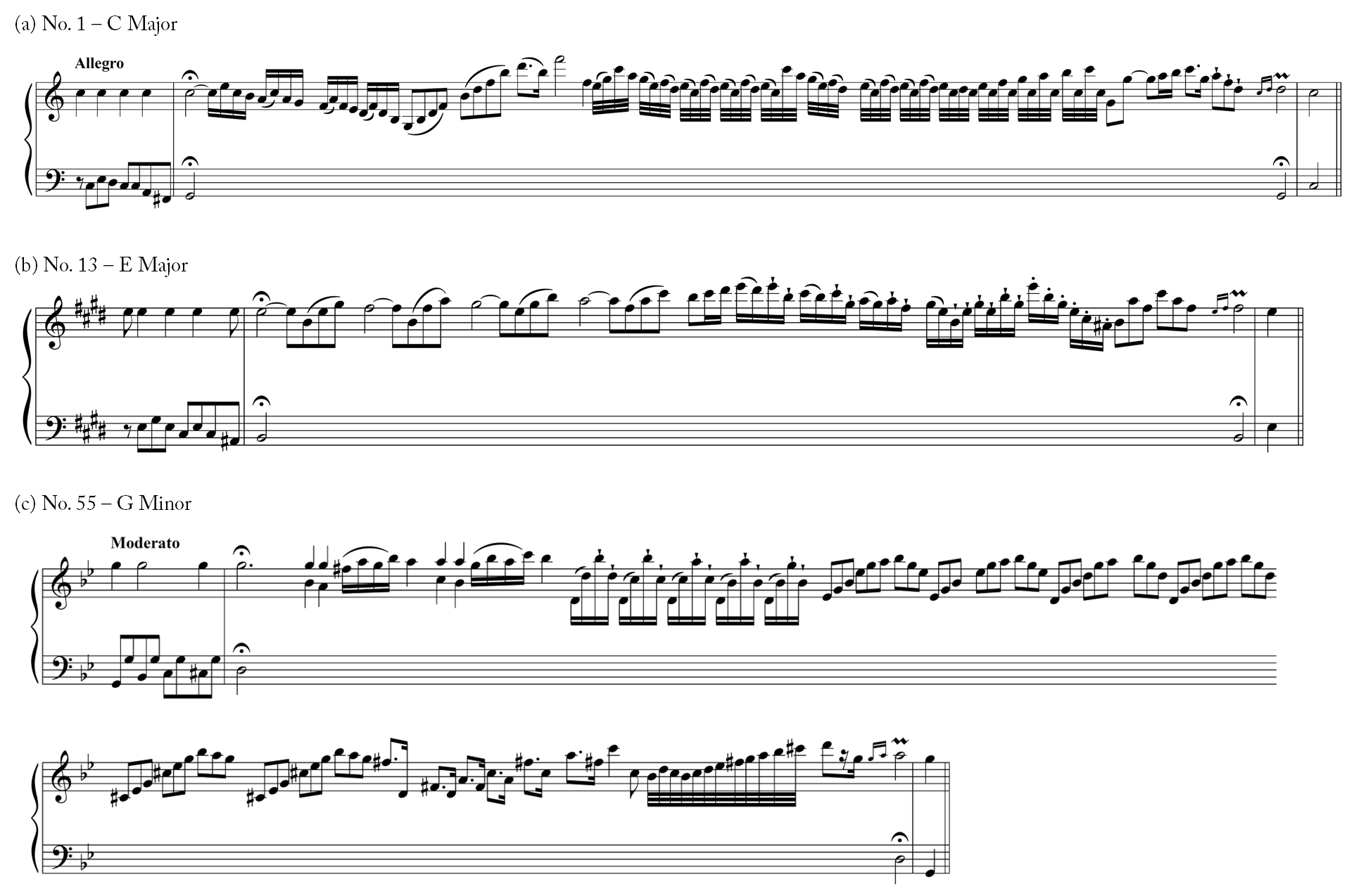 Example 7. Three cadenzas from Luigi Borghi’s Sixty Four Cadences or Solos for Violin in all the Major and Minor Keys, op. 11 (ca.1770)