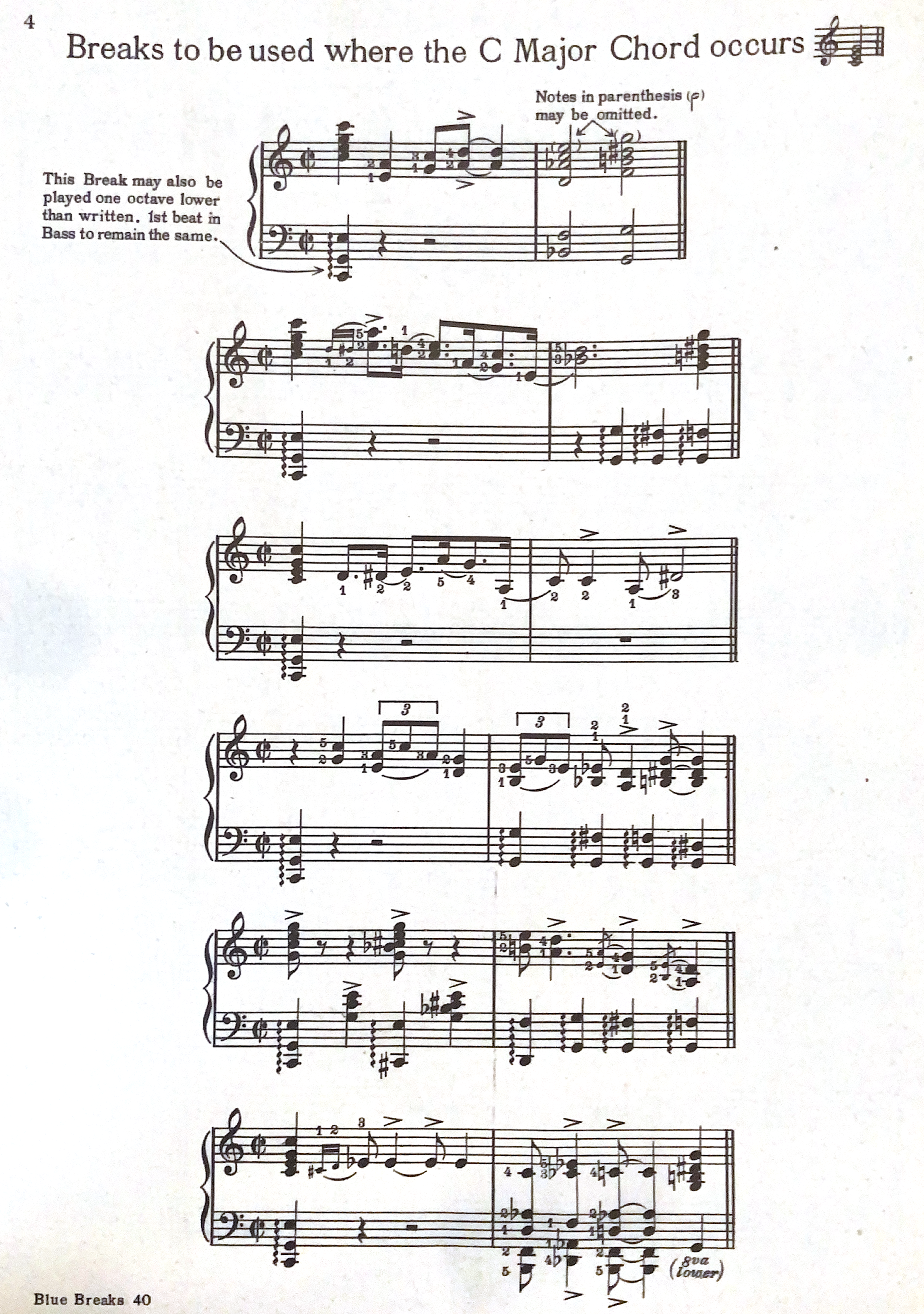 Art Shefte’s suggestions for “blue breaks” on a C triad (1927a, 4)