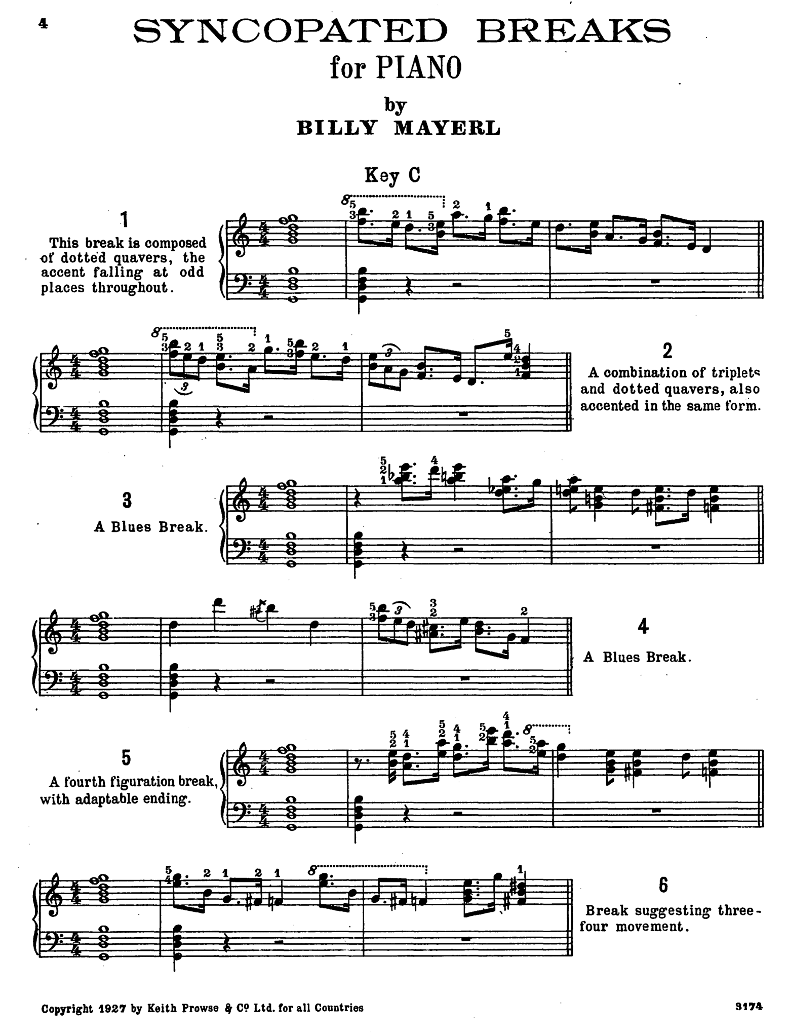 Billy Mayerl’s suggested “syncopated breaks” for piano (1927, 4)