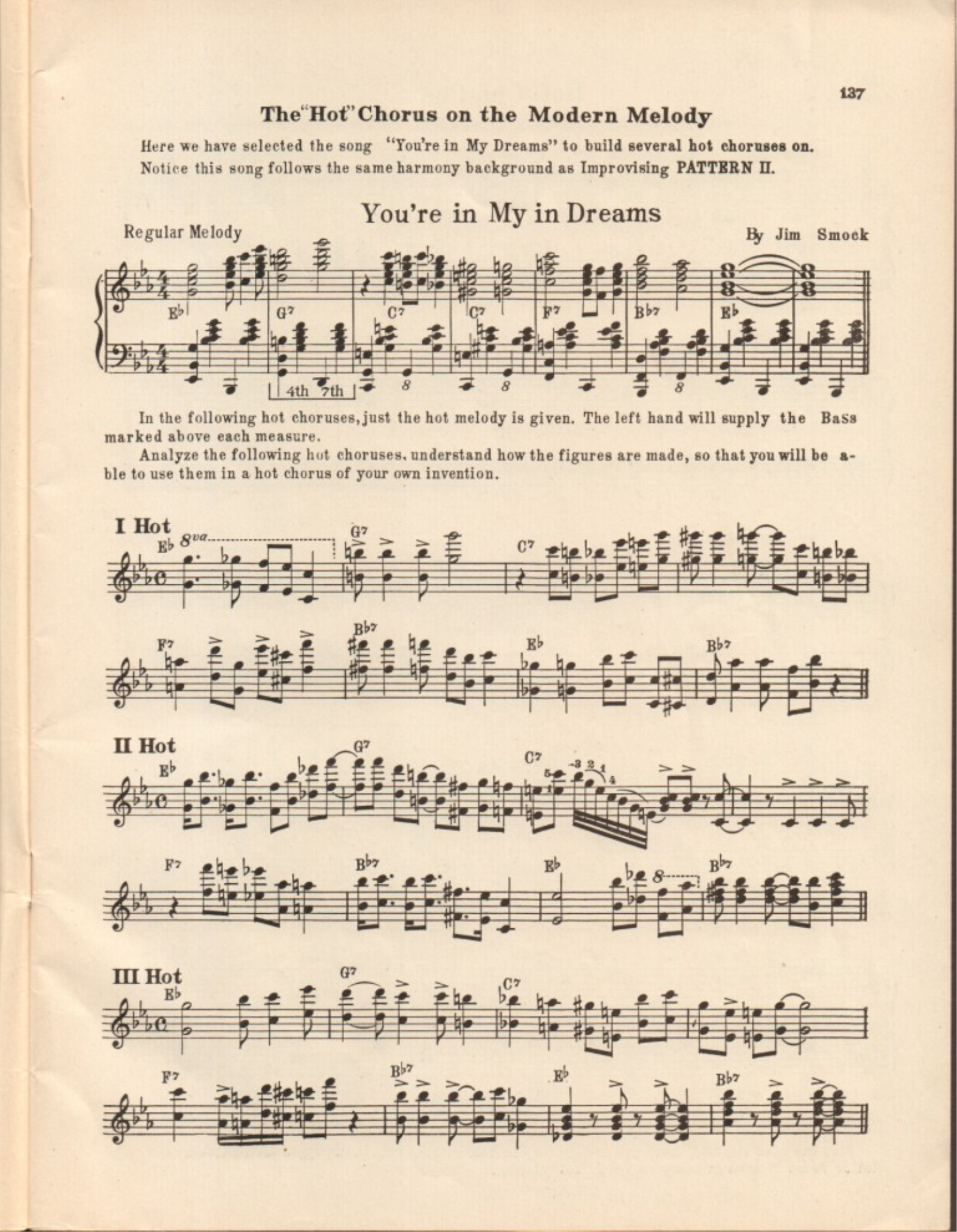 Example 24. Eight-bar song section with three “hot choruses” as sample improvisations, Lopez Book III (1934a, 137)