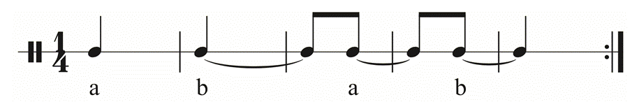 Benadon’s Figure 8.14, a loop of two iterations of 23 in a 1/4 metric framework