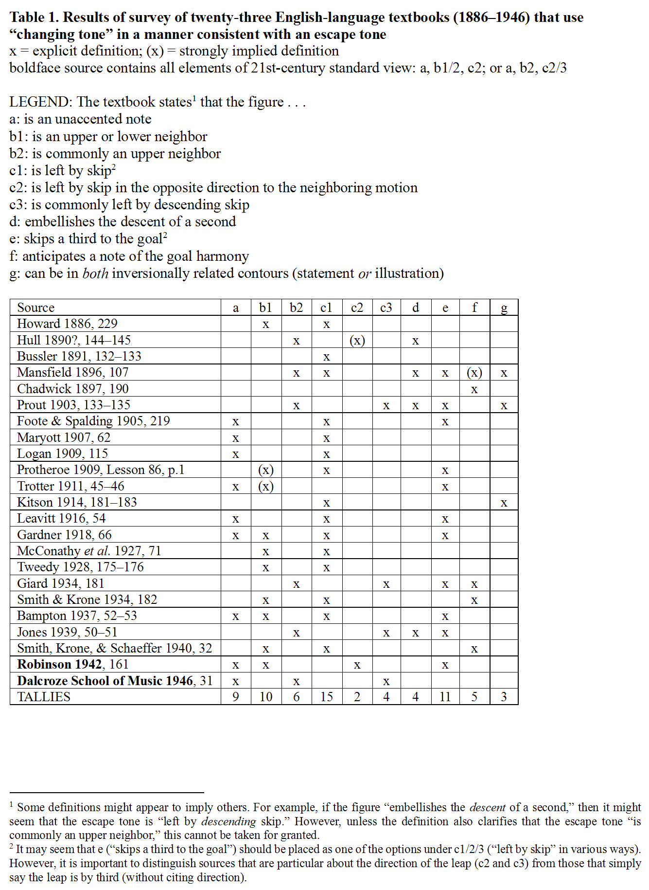 Example 2. Results of survey of twenty-three English-language textbooks (1886–1946) that use “changing tone” in a manner consistent with an escape tone