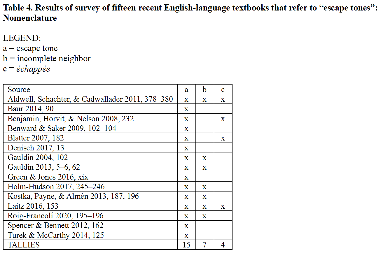 Example 7. Results of survey of fifteen recent English-language textbooks that refer to “escape tones”: Nomenclature