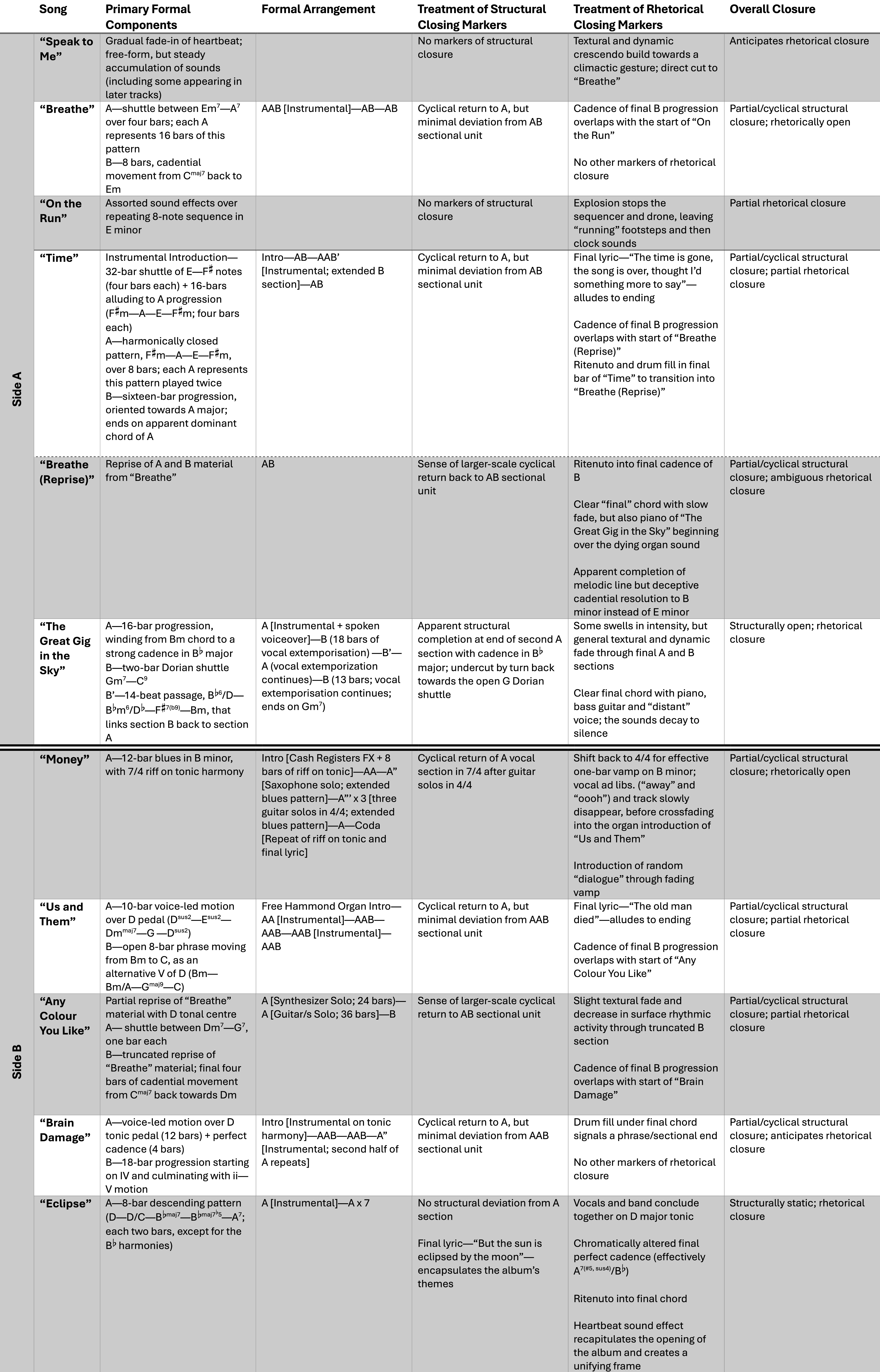, structural and closure summary