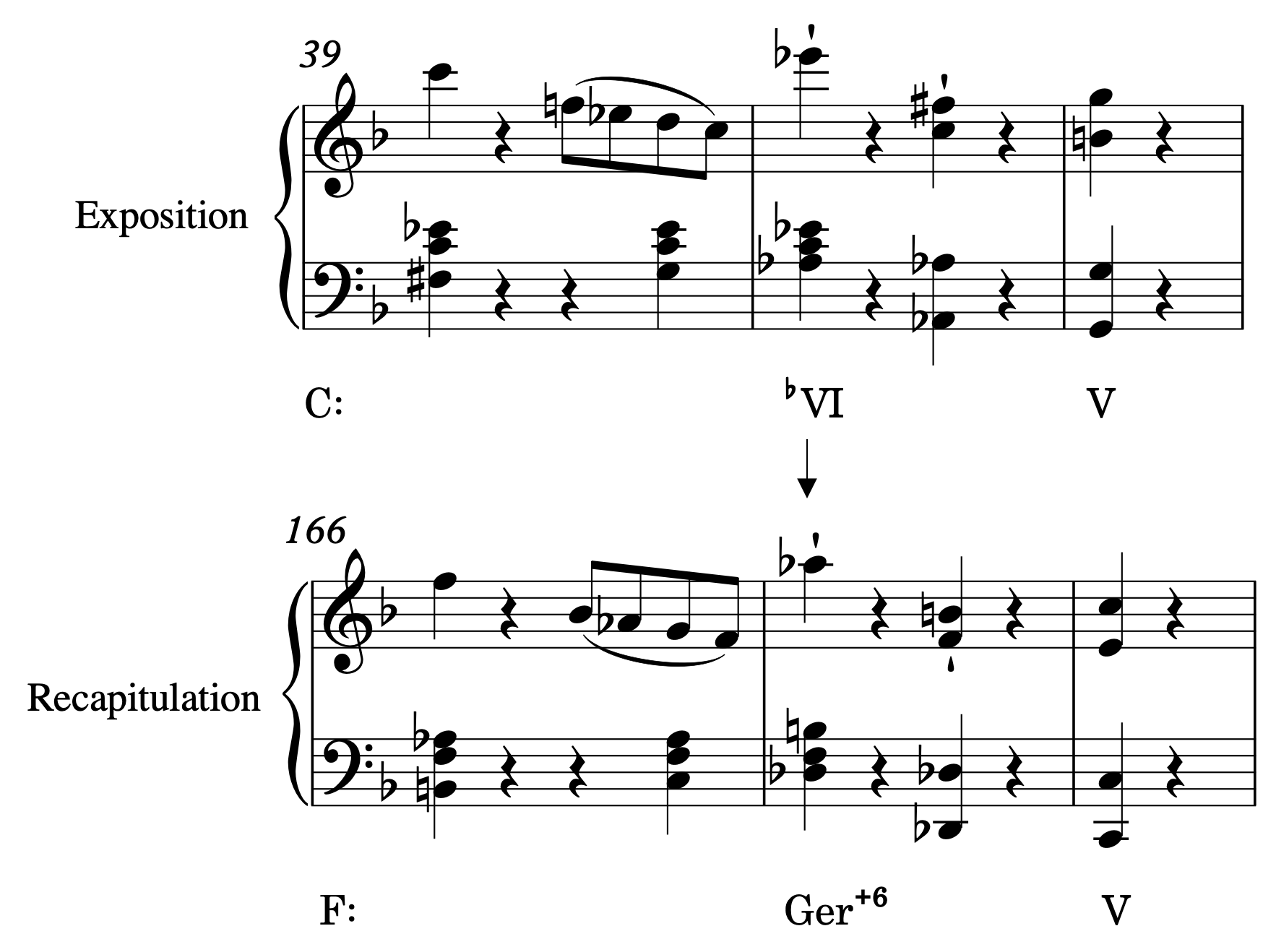 A pre-dominant power up in Mozart, Piano Sonata, K. 533/i (end of TR).