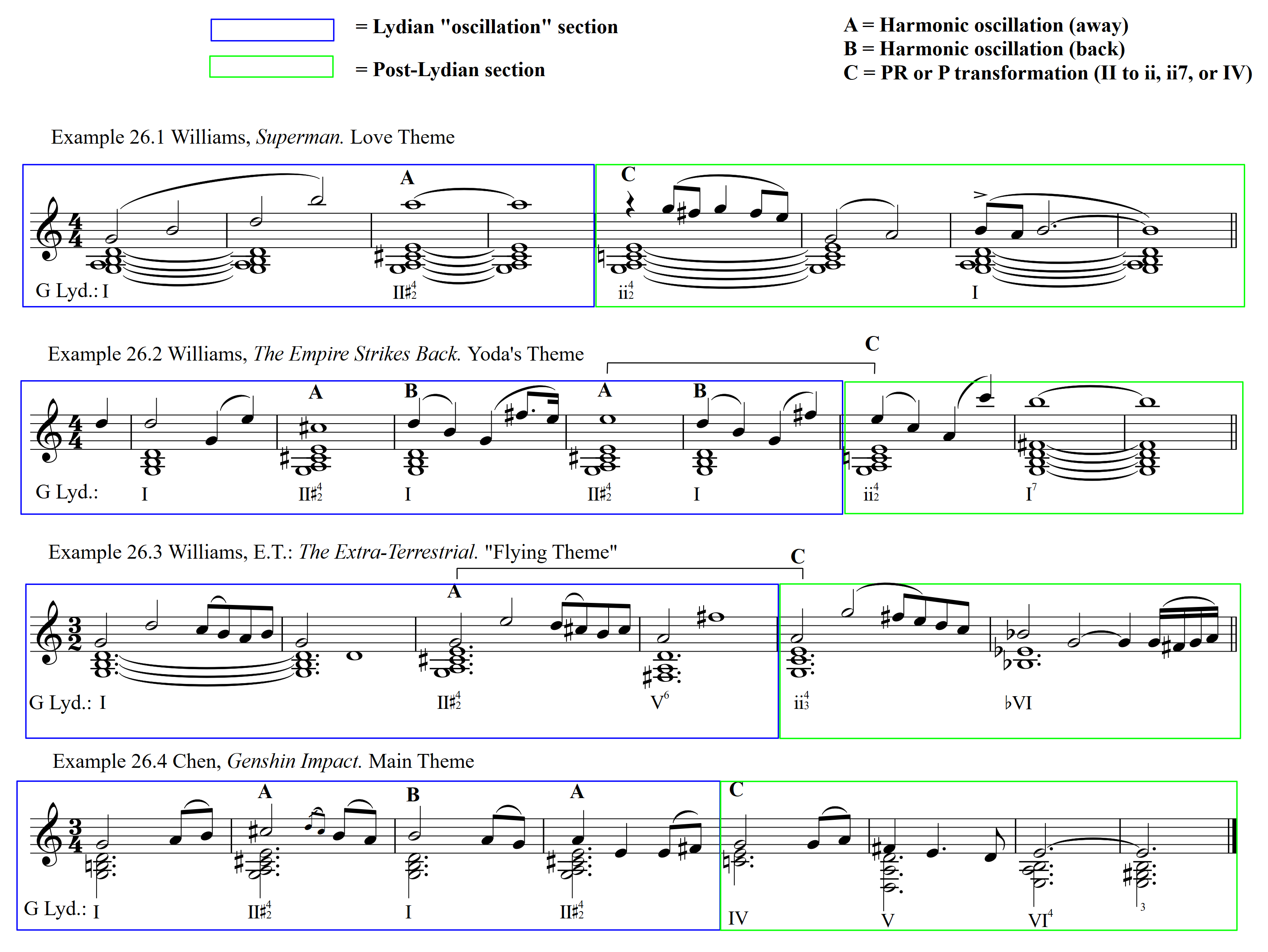 Example 26. Leitharmonic idioms of “soaring” in screen music (partially adapted from Schneller 2013 with additional annotations)