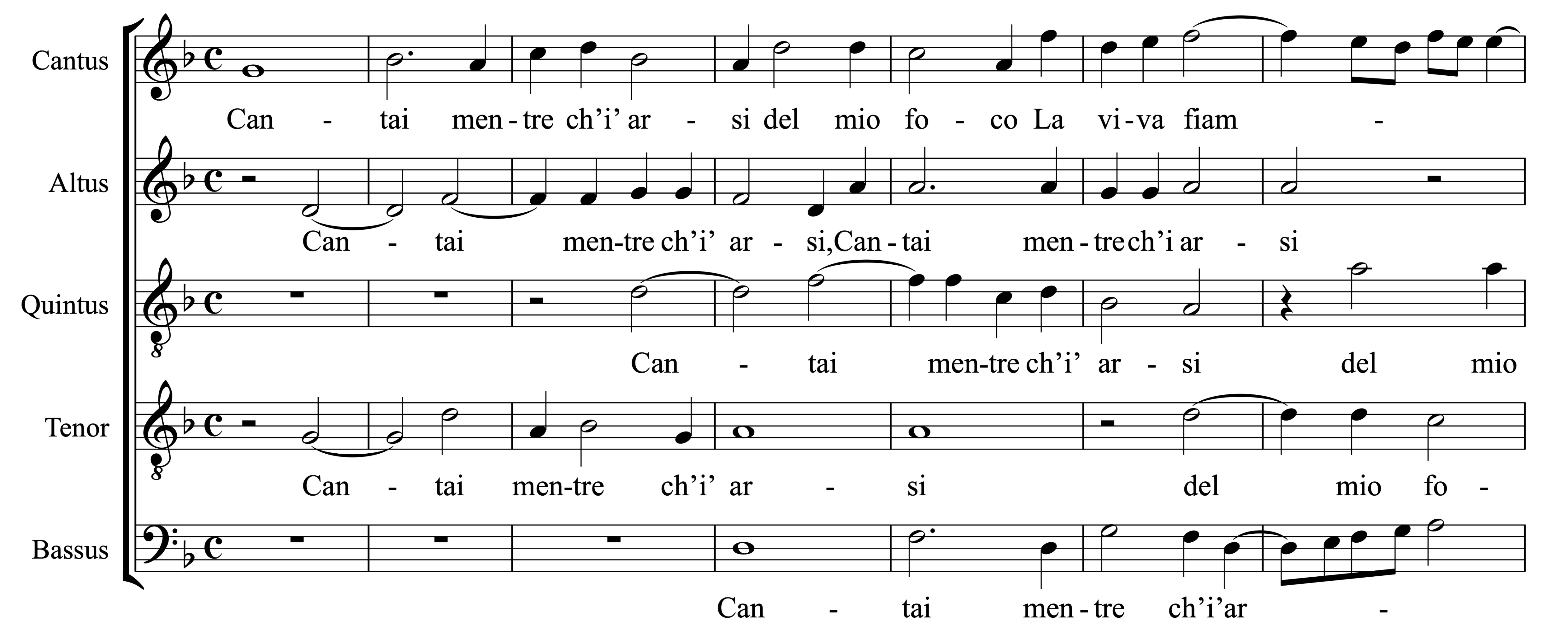 #1, “Cantai mentre ch’i’arsi” mm. 1–7.