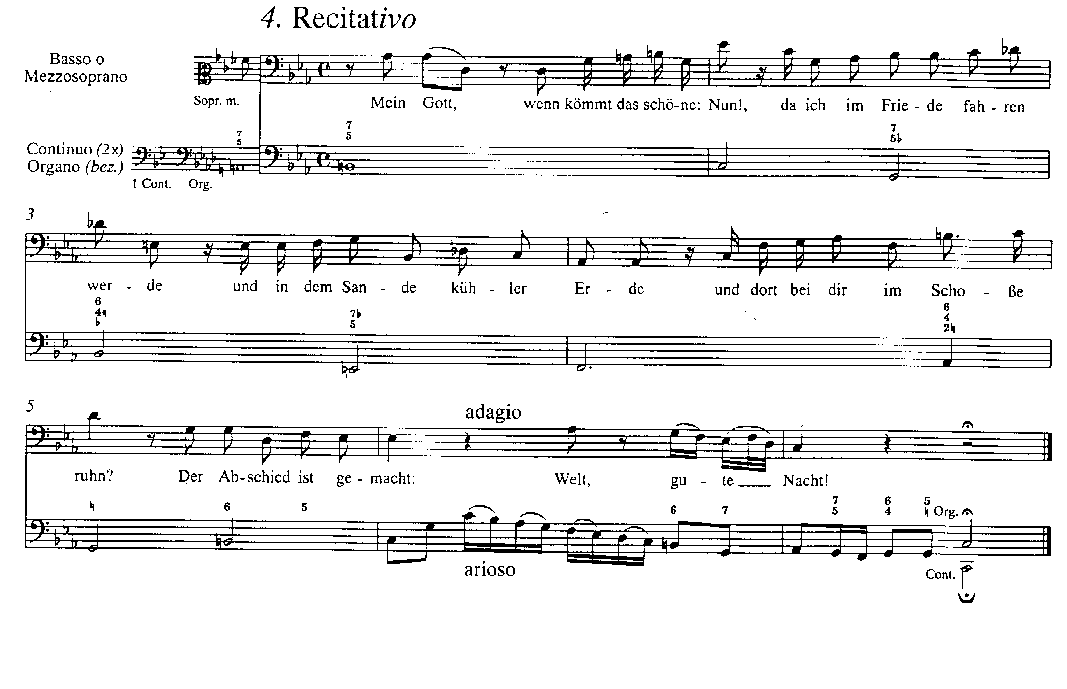 4.. Readers who own the Dover volume Bach: Eleven Great Cantatas (New York, 1976) can find other examples of the "question" figure on p. 61 (m. 4 and mm. 8-9 of the tenor recitative "Wie hast du dich, mein Gott" from Cantata No. 21) and p. 157 (mm. 7-8 of the tenor recitative "Der Heiland ist gekommen" from Cantata No. 61).(return to text)